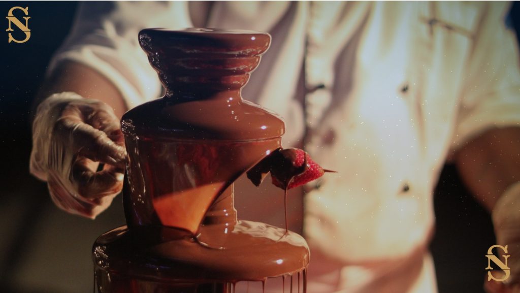 Add a touch of indulgence with a chocolate fountain, allowing guests to enjoy dipping strawberries in cascading melted chocolate.